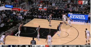 防阿伦的人——莱恩——始终不敢提到罚球线以上,这给防守第一线莫布利的对位人——马尔文-巴格利三世——制造了很大的压力。如果巴格利不提上阻挡加兰德,加兰德就会发现一条宽敞的跑道,对于他这样一名艺术感十足的球员来说,这样的操作空间就太大了。
