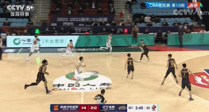 郭艾伦同赵继伟双子星连线,打出流畅进攻,攻势如潮,帮助辽宁队22-14领先深圳队。