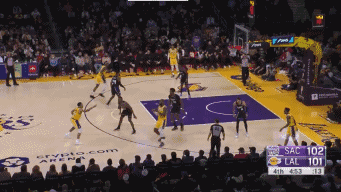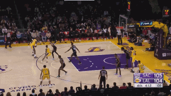 湖人vs国王,末节截止4:40,詹姆斯连续轰进两记三分!