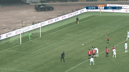 第10分钟,拉尔森左路角球开至前点,董岩鋒小禁区左角处头球攻门顶近角击中左侧边网。