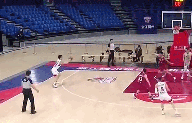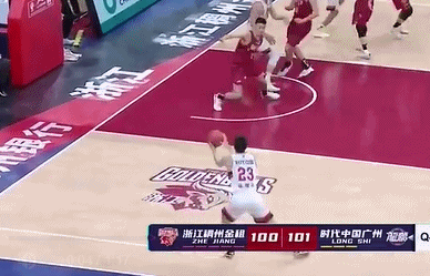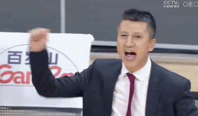 当时广州进攻张展玮跳投命中,郭士强非常兴奋振臂鼓舞士气,但看到前者被朱旭航垫脚摔倒之后,他马上变脸,向裁判申诉示意违体。