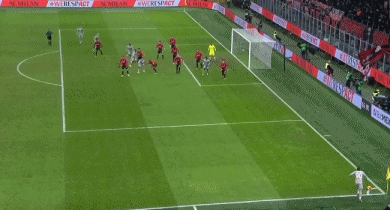 第17分钟,热那亚发出角球,奥斯提加德跃起头球破门,热那亚1-0领先米兰。
