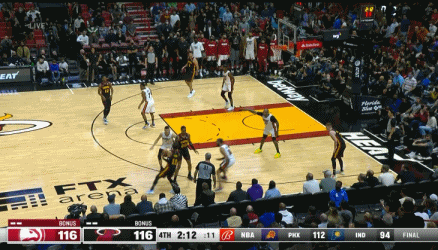 老鹰118-124末节遭热火逆转,特雷-杨在关键时刻连续出错。