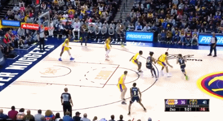 湖人客场对阵掘金,第二节詹姆斯大帽纳吉。
