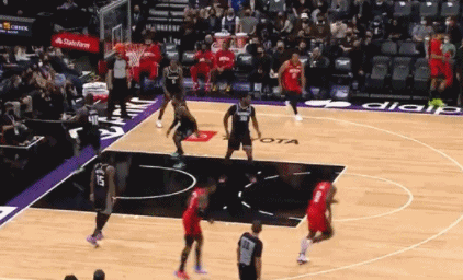 比赛中,杰伦-格林直接用速度超车移速在联盟中属于顶级的福克斯,随后突入篮下单手劈扣得手!