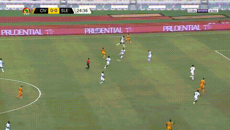 第25分钟,效力于阿贾克斯俱乐部的阿莱前插,接到队友漂亮的斜塞球,停球,门前轻松地推射,1-0,科特迪瓦取得领先。