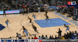 那场比赛早些时候,莫兰特在一次半转换进攻中减速,回身将球传给贝恩,然后在移动中挡住了防贝恩的时候,制造了一个跟进的三分球。莫兰特可以比任何跑得都快,如果他想的话,但他觉得有些时候减减速可以为队友创造出空间。