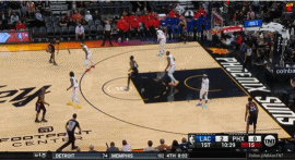 约翰逊的篮下出手也有所上涨,他是一名很稳的空切手,擅长在空切中碾压身材较小的防守人。他在移动中接球,压低肩膀,一直扛到篮下。(约翰逊在合理冲撞区的命中率达到70%。)当对手用大体型侧翼去防保罗和布克时,他们就只能用较小的后卫去防约翰逊,这个时候,约翰逊的硬怼就变得很重要了。