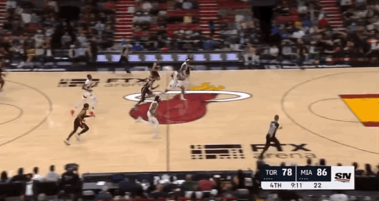 猛龙队暂停后范弗里特抢投三分命中,双方相差3分。猛龙队抢断不成,阿奴诺比只能选择犯规战术,阿德巴约两罚全中,范弗里特抢投三分不中,热火队以104-99险胜。