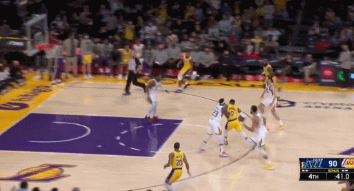 下半场爵士重振旗鼓追分,霍华德和威少接连赔上犯规,湖人失去了节奏,威少暴扣带来的兴奋情绪也消散了。威少在这一节一分未得,效率大跌,但在他下场后,湖人输得更多。