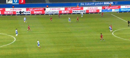 第45分钟,基米希开出右侧任意球,反越位成功的穆勒抢点捅射进球,0-2,拜仁扩大领先优势,穆勒射进本赛季德甲第6球。半场战罢,柏林赫塔0-2落后拜仁。