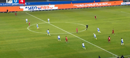 第76分钟,格纳布里抢在门将之前挑射,格克特门线前把球踢出。第78分钟,基米希直传,格纳布里右侧切入禁区推射射进远角,0-4。