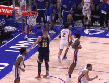 在末节比赛最后的1分41秒时,约老师攻击篮下没能命中,自己抢下进攻篮板后在三人防守下再次投篮不中。裁判报告指出,活塞队员斯图尔特在防守时,从后面和约老师的肩膀有接触,影响了后者的出手。这本该是一次投篮犯规,裁判员当时没有吹罚。