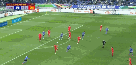 通过0.5倍速的gif我们可以看到,在徐新高位持球时,武磊已经做好了前插的准备。这时候的吴曦,有一个非常明显的回撤动作,帮助吸引了长友佑都,这样武磊就可以前插谷口彰悟的身后。