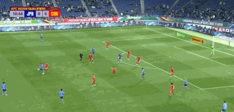 他若将球回传再前插,日本队会进一步前提阵型,让国足右侧始终无法形成有效的传递,武磊前插之后更拿不到球,很多时候只能被“摁”在后场。