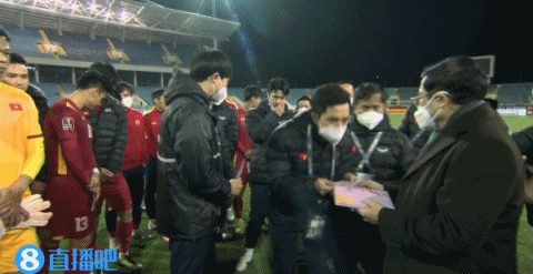 赛后,镜头给到了越南队领导直接在现场给球员们发红包。