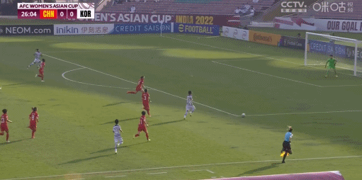 于是,第26分钟,中国队边路中路双双破防,韩国队抢点破门。