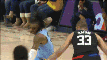在第三节莫兰特上篮时空中被小莫里斯拽下,直接平躺着摔在地上,后者吃到二级恶意犯规,被驱逐。