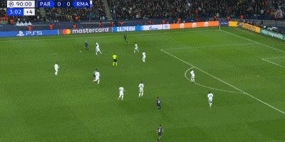 第90+2分钟,格耶禁区前一脚远射被库尔图瓦没收。第90+4分钟,姆巴佩过掉防守后一脚小角度推射打进绝杀球,巴黎圣日耳曼1-0皇家马德里。**