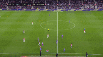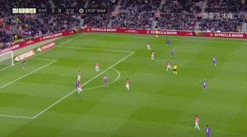 90分钟佩德里长传找登贝莱,后者传中,吕克-德容头球破门。巴萨3-0!