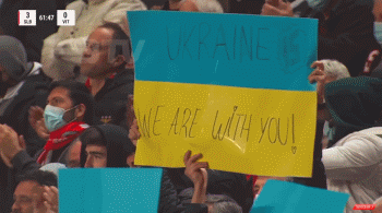 此役6万观众,也用山呼海啸的方式表达对亚列姆丘克的支持。球迷们在看台打出诸多标语,其中包括“停止战争”、“我们和乌克兰在一起”等。球迷们集体起立鼓掌致敬亚列姆丘克,乌克兰国脚举手向看台示意致谢,他感动到哽咽。