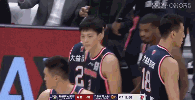 本赛季的CBA常规赛,广东队极少进行以往常用的5上5下。不过今天对阵新疆的第二节中段,这一幕终于重现。广东队进行了人员大轮换,换下了易建联、周鹏、徐杰、威姆斯、杜润旺,换上了胡明轩、苏伟、任骏飞、汤杰、莱多。