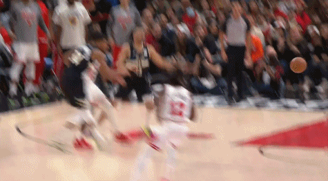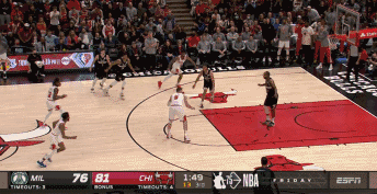 3月5日讯 公牛vs雄鹿,在第三节小琼斯单臂隔扣字母哥。