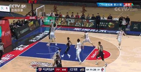 第四节开始后,朱荣振低位接球上篮,在余嘉豪的贴身干扰下,他的出手偏到离谱,朱荣振也被顶出了界外;接下来一个进攻回合,朱荣振再次强打余嘉豪,这一回他还是完全顶不动对方,对抗后甚至失去了重心,有些狼狈地摔到在了地上。