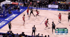 还不止于此。格威并不仅仅是个定点投手,当防守球员扑向他的时候,他能够持球突破,他的对抗能力肉眼可见的提升了——