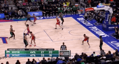 “艾米-乌度卡半激进地决定让他麾下几乎可以摧毁对手一切投篮的中锋——时间领主罗伯特-威廉姆斯三世——放在远离球的侧翼,而球队的第二高度——首发当中的霍福德,有时候是小阵容当中的格兰特-威廉姆斯,塔图姆或者杰伦-布朗——去对位对方第一掩护墙,然后无限换防。