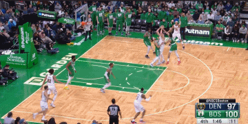 以下场面更为夸张,凯尔特人没有让自己场上唯一的大个子罗威去防约基奇,而是让他盯阿隆-戈登,与上赛季MVP对位的是……杰伦-布朗。一次换防之后,约基奇在肘位对上了德里克-怀特,塔图姆上前夹击,这就让约基奇看到了传篮下的机会,但罗威咆哮而过,硬是把一次空切上篮给帽掉了——