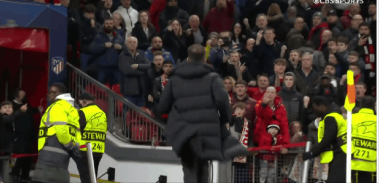 进球后,西蒙尼在梦剧场激情庆祝,霸气十足,但这也激怒了曼联球迷。比赛结束后,西蒙尼一路小跑冲向更衣室,曼联球迷将水瓶砸向匪帅。水瓶落地之后,甚至飞溅起了大量的水珠。在这一时刻,曼联真可谓是输球又输人。