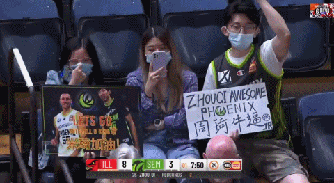 在首节还有7分51秒的一次进攻中,周琦篮下造了犯规,第一罚命中第二罚不中。但周琦反应很快抢到进攻篮板,补篮得手制造2+1。看台上的中国球迷亮出了“周琦牛逼”的标语,为他加油助威。