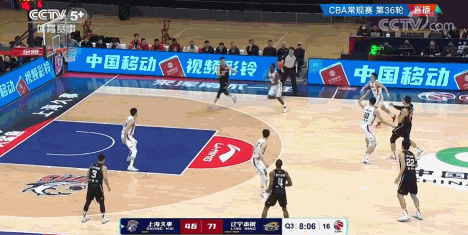 3月18日晚,常规赛第36轮辽宁队对阵上海队。第三节战至8分03秒,辽宁打出一次精彩的前场配合,韩德君高位接球后不做停顿,击地长传直送篮下,张镇麟接球后起飞暴扣。
