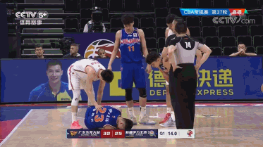 CBA第37轮广东队对阵新疆队。首节比赛还剩14秒,阿不都沙拉木和胡明轩飞扑争抢,两人空中相撞,阿不都不慎倒地,背部着地。
