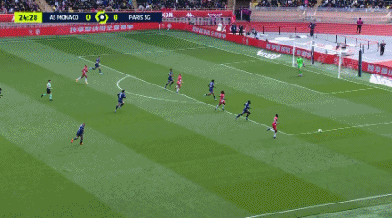 在第二个丢球上,努诺-门德斯再次体现出了态度上的松懈。本耶德尔在右路反越位后,右后卫阿吉拉尔拼命冲刺前插。努诺-门德斯并没有全力回追跟住阿吉拉尔,他只是象征性地慢跑。在这个瞬间,决定一切的是态度。努诺-门德斯这种年轻球员都表现得如此散漫,球队内部氛围一定出了问题。摩纳哥3人配合,打穿了巴黎8人的防线。