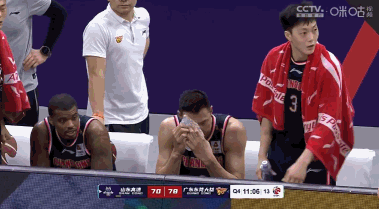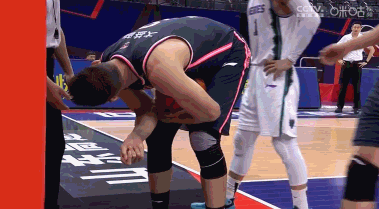 易建联非常痛苦,先是找裁判理论,裁判没有吹罚。易建联非常不满,怒拍篮球,冲向技术台进行理论。