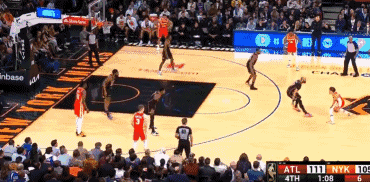 比赛开始后老鹰率先找到手感,许尔特和特雷-杨连续上篮得手,巴雷特补篮2+1止血,托平及时跟进轻松暴扣,特雷-杨回敬超远三分,加里纳利中投也有,老鹰率先占优,中段巴雷特上篮取分,伯克斯里突外投不断打进,亨特内线连续回应,富尼耶飚中三分后抛投再进,尼克斯打出14-3攻击波一举反超,末段格莱姆斯再进三分,特雷-杨对飚巴雷特,首节结束时尼克斯34-30暂时领先。