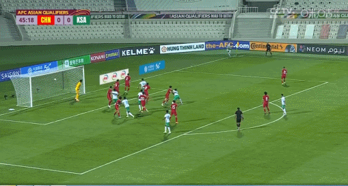 第46分钟,法拉杰主罚角球开出,谢赫里前点头球后蹭入网,中国0-1沙特!↓