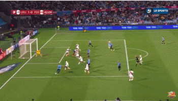在第94分钟时,秘鲁险些绝平。秘鲁球员中场左侧远距离吊射,乌拉圭门将罗齐特人退回到了球门中,但平伸双手向外举着皮球。VAR确认,皮球并没有完全越过门线,乌拉圭逃过一劫。