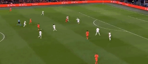 第53分钟,德佩脚后跟做球,博古伊斯插上禁区左侧左脚推射被挡。第71分钟,弗朗基-德容中场持球推进后将球一分,贝尔温带球杀入禁区左侧右脚兜射远角破门,荷兰再进一球,4-2!