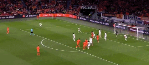 第16分钟,布林德前场左侧弧线球挑传禁区,贝尔温中路包抄头槌入网,荷兰领先,1-0!