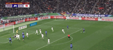 比赛中,日本队长吉田麻也门前3米踢丢空门,错失绝佳良机。