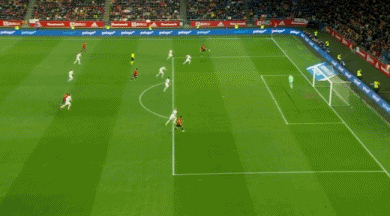 第61分钟,索莱尔接队友挑传后横传禁区,萨拉维亚门前头球破门,西班牙4-0领先。