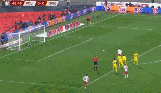 第48分钟,卡尔斯特罗姆禁区里背后推倒刚上场的克里乔维亚克,主裁判罚点球给波兰。莱万骗过奥尔森把球推进瑞典球门右下角,波兰1-0。