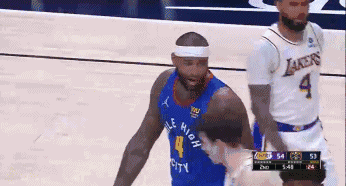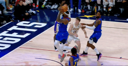 湖人VS掘金,考辛斯上篮被斯坦利扇到脑袋。