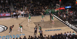 篮网的威胁不止是杜兰特,当欧文持球,凯尔特人经常也会寻求夹击,首节7分56秒这次进攻就是这样,欧文的出球同样非常快,他传给切入的布朗,当绿军轮转收缩,布朗发现,杜兰特的机会来了,45度角的三分线外,杜兰特接到布朗传球,空位三分命中。系列赛前两场,杜兰特总共只得到2次空位三分的机会。