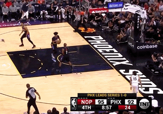 而首轮G4的琼斯,没有了和布克的对位,甚至在防守端有一种降维打击的感觉。全场2次抢断,3次封盖了对手的三分出手。上一个能用这样的飞帽三分镜头让人记住的球员,还是场边偷着乐的胖虎吧?
