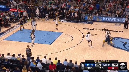 比赛第三节最后时刻,灰熊队的莫兰特掌控球权,他直接在罚球线内一步起飞,迎着森林狼队的比斯利完成单手隔扣,比斯利被扣倒在地。