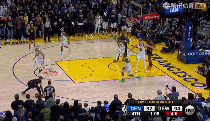 考辛斯换下约基奇,那是掘金今天最后一个比数领先的回合。